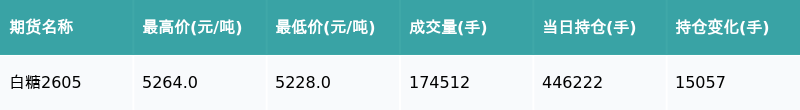 南财智讯2月25日电,盘后期货数据显示,郑州商品交易所的白糖主力合约收跌0.08%,配资炒股收盘报5248.0元/吨,日内资金流出7.97亿元。其他相关指标见下表: